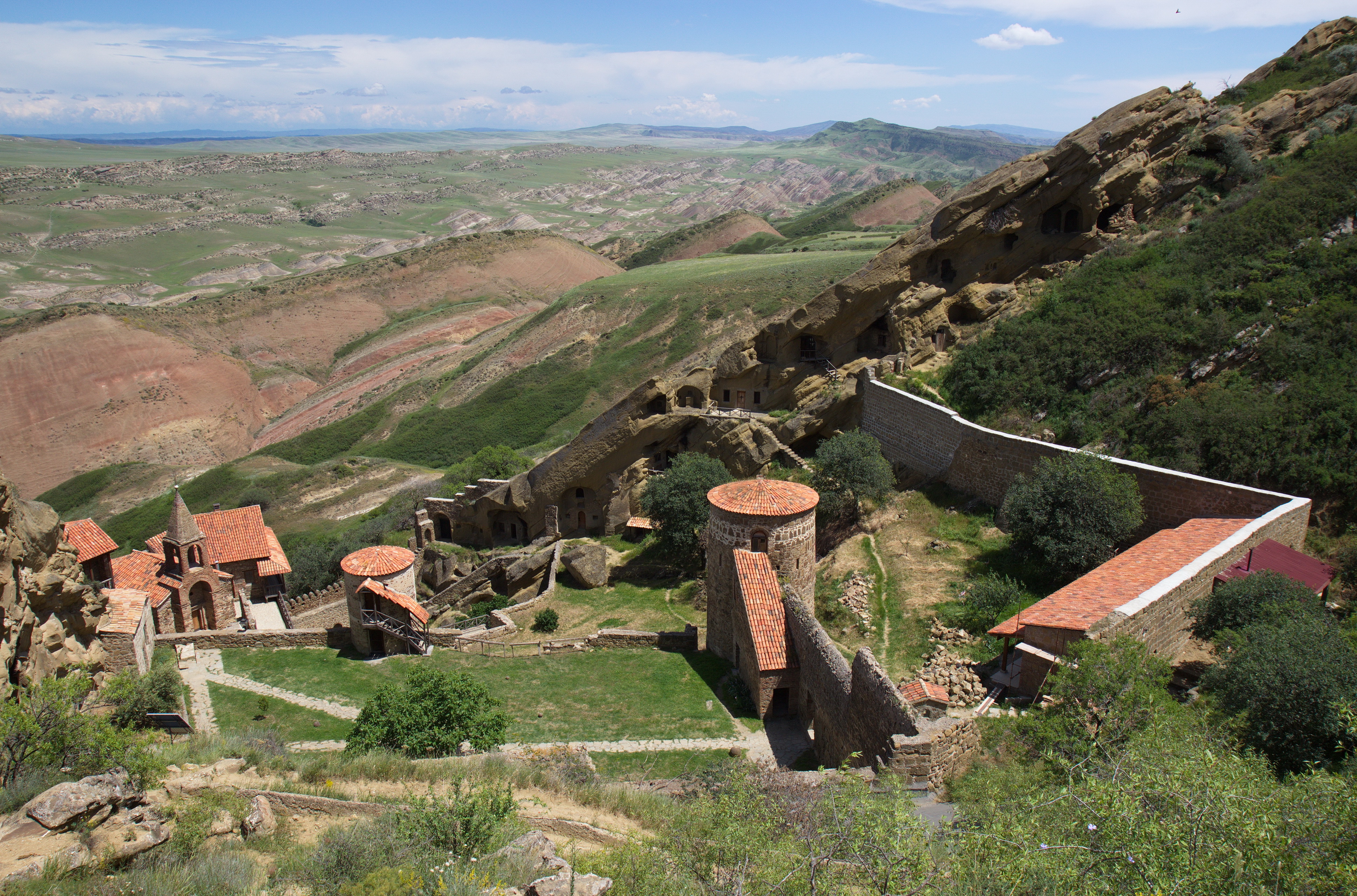 Dabei ist nicht nur das Kloster an sich interessant, sondern auch die umgebende Landschaft – die Klosteranlage liegt mitten in einer Halbwüste. Auf dem Bergrücken befindet sich die Grenze zu Aserbaidschan, wobei man diese auf einem Rundweg mehrfach überquert. Besonders beeindruckend fand ich die Stimmung, die dort herrschte – in Mitteleuropa, oder zumindest in Deutschland, findet man solche menschenleeren Landschaften kaum. Außer dem Säuseln des Windes und den Geschrei einiger Greifvögel hörte man keine Geräusche und auf der Spitze des Mount Gareja hatte man in jede Richtung eine atemberaubende Aussicht.