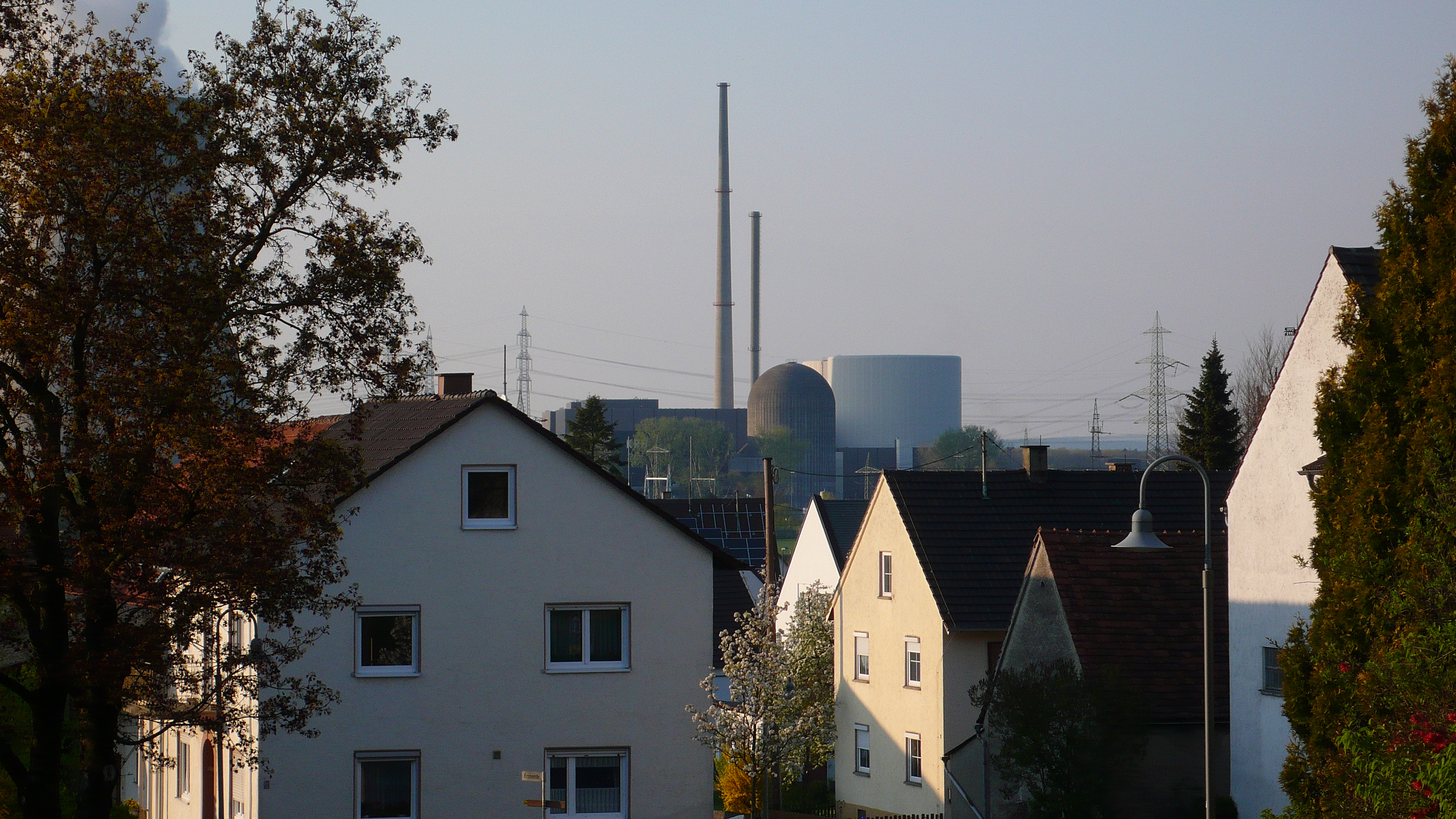 Ausblick aus Gundremmingen auf die Reaktorblöcke A, B und C